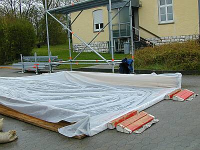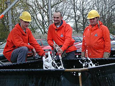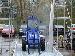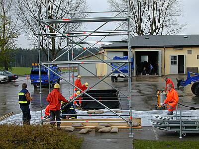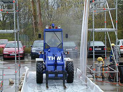Die Fachgruppe Infrastruktur des THW Lauf probte am Samstag den 28.04.2001 für den MKS Ernstfall, der hoffentlich nie eintreten wird. Zentraler Punkt für den Einsatz des THW würde eine Desinfektionsstation sein, mit der alle aus dem betroffenen Gebiet ausfahrenden Fahrzeuge entseucht werden müssten.