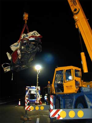 sowie Stativ-Scheinwerfer (insgesamt 9.500 Watt) großräumig aus. Die Helfer halfen bei den Bergungsarbeiten
