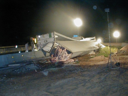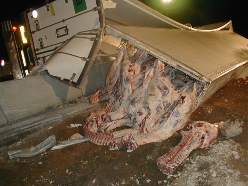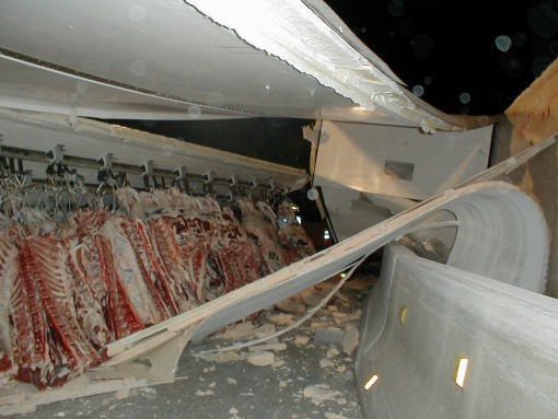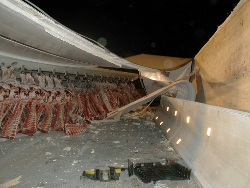 umgeladen werden musste. Der Laderaum des Lastwagens wurde dabei komplett aufgerissen. Ein Großteil des Rindfleisches