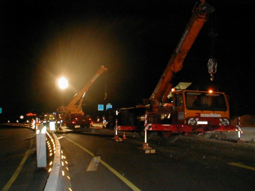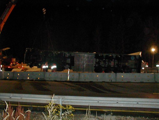 Die A73 war für mehrere Stunden komplett gesperrt. An derselben Stelle verunglückte am 28.06.2001 ein mit
