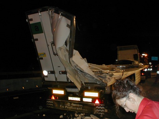 | Der Laderaum wurde durch die Seitenbegrenzung, gegen welche der Laster fiel, regelrecht abgetrennt |