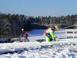 Am 03.01.02 war erneut der Einsatz des THW Lauf von Nöten. Bedingt durch die neuen Schneefälle war das Dach erneut in Gefahr. Da wir bereits Erfahrung gesammelt hatten, war der Einsatz innerhalb von 2,5 Stunden erledigt.