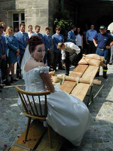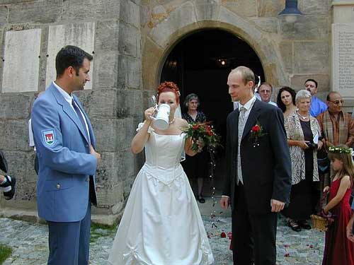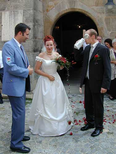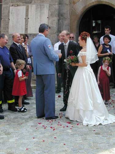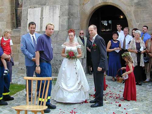 Bereits zum zweiten Mal in diesem Jahr heiratete ein THW-Angehöriger seine Traumfrau. Markus Neugebauer gab am Samstag, den 31. August 2002, seiner Frau Sandra in Leinburg das Ja-Wort.
